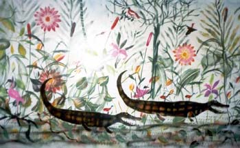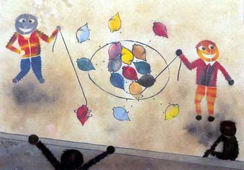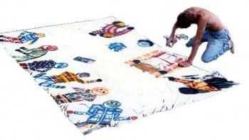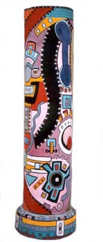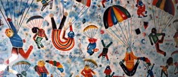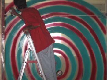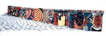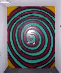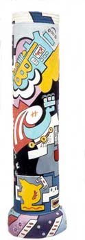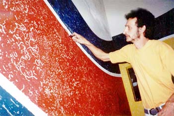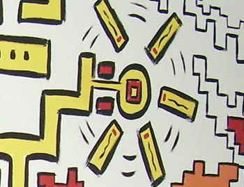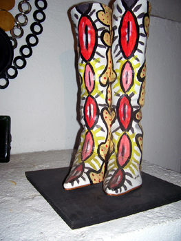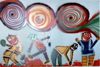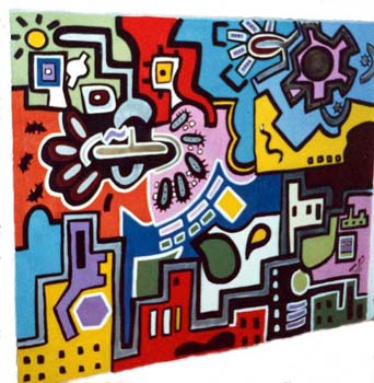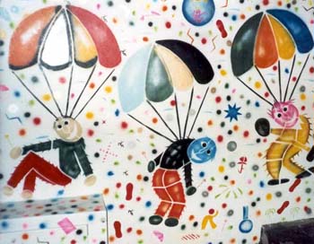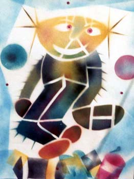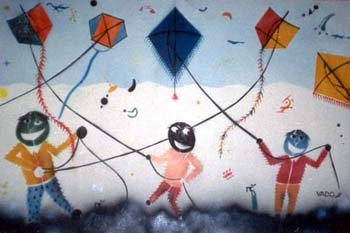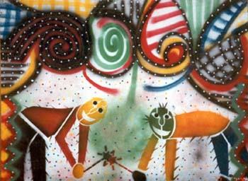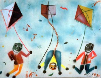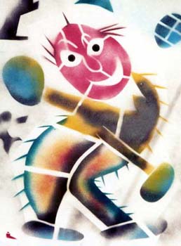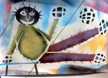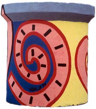 O imaginário de Vado se expressa de forma simples: num suporte de eucatex, silhuetas recortadas em papelão são aplicadas, deixando vazios que o artista preenche, em várias operações que dependem da gama de cores, com tintas saindo diretamente da bomba de spray. Entretanto, os "bonecos" de Vado são o resultado de centenas de desenhos, nos quais o traço se apurou, o estilo se definiu, até chegar a constituição da "Família", um conjunto de fantoches aparentados pela fisionomia e pela silhueta: todos sorridentes,todos delineados por um cerne preto que apresenta a particularidade de ser "espinhoso". As personagens são como os ouriços, um pouco desajeitados na postura, braços e pernas desengonçados, uma expressão de candor no rosto, não deprovista de certa ironia,criaturas procurando se proteger do mundo externo com frágeis espinhos. Um pouco como a rosa do "Pequeno Príncipe"...