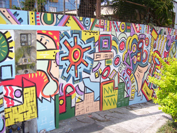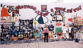 No Brasil estas manifestações surgiram concomitantemente nas grandes cidades, em fins dos anos 70. As mensagens politicas pintadas nas paredes, em vésperas de eleição, já eram bem conhecidas entre nós, pois o muito sempre foi um midium tradicional para elas no Brasil, como, de resto, em todo o terceiro mundo. Elas parecem estar ligadas aos sinais de reabertura democrática e a outra razões mais complexas. Aqui apareceram nomes, mensagens politicas, desenhos irreverentes ou não, declarações de amor, quase sempre impregnadas de ironia e senso de humor.