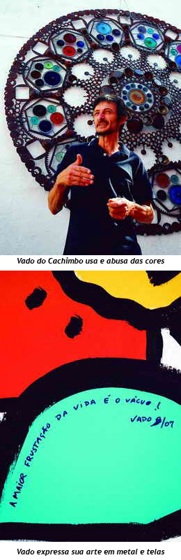 Criativo em tempo integral e parece que está sempre ligado na tomada. É essa a impressão que se tem do grafiteiro, escultor e artista plástico Vado do Cachimbo no primeiro contato. Falante e com um mundo de “causos” que conta com seu jeito irreverente e alegre, acaba contagiando a quem ouve. E desde outubro passado ele, a mulher Carmem e a filha estão morando na Vila Madalena em sua chamativa casa-ateliê com paredes vermelhas e enormes esculturas e mosaicos expostos que não dá para não ver.